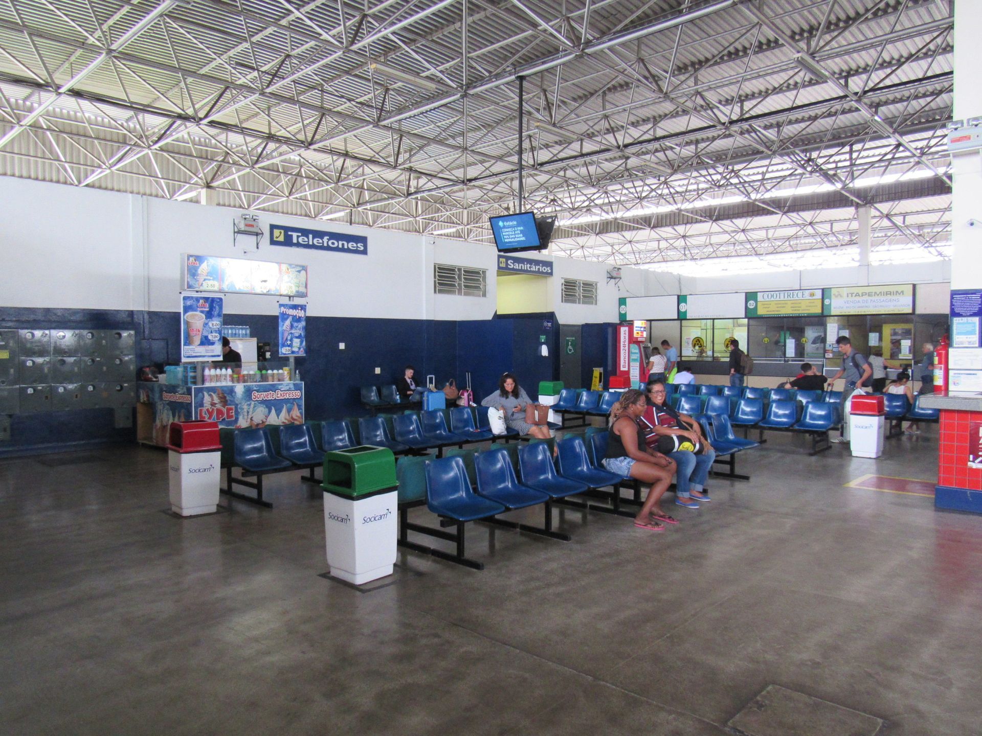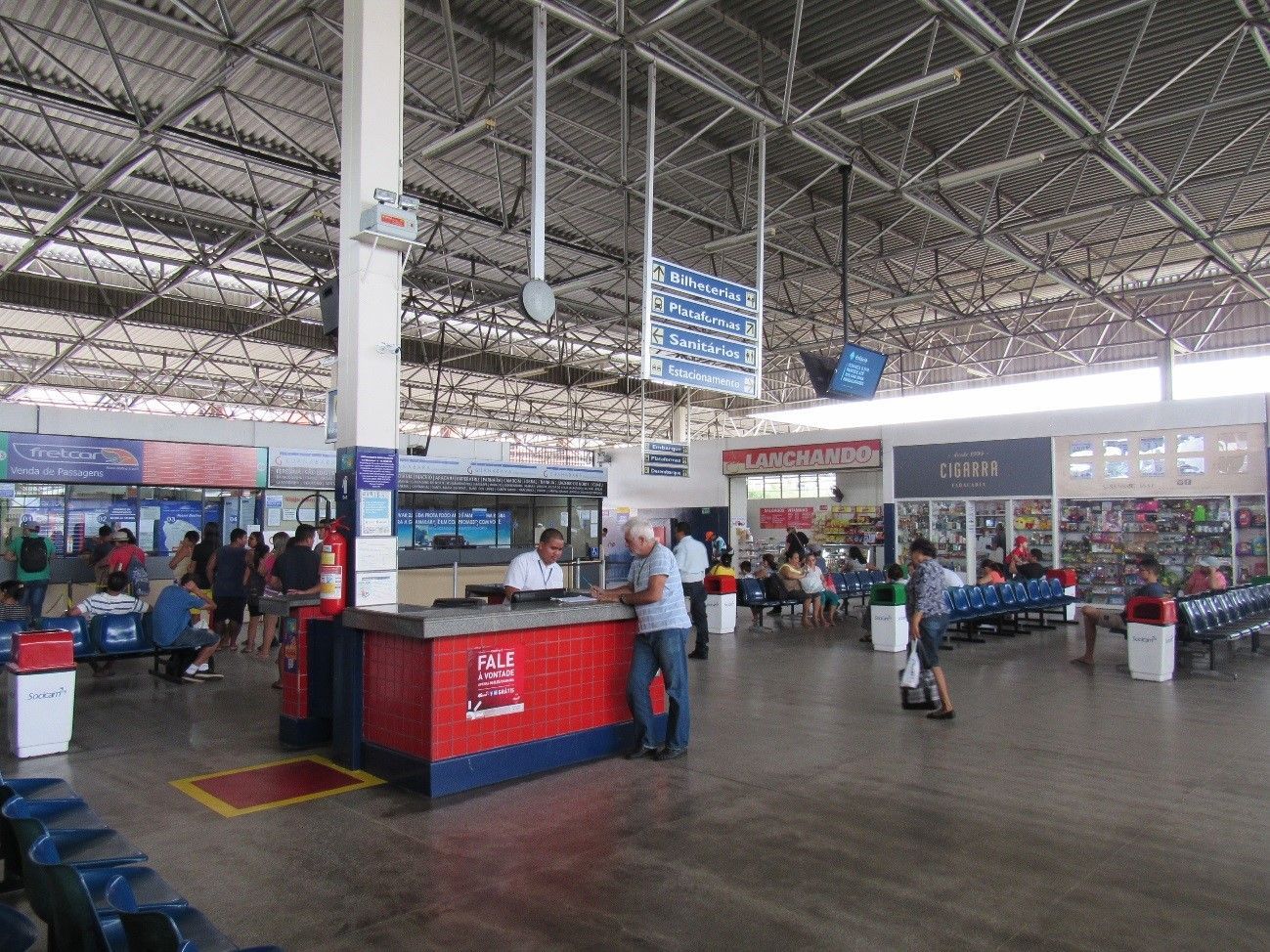 serviços complementares: setor de informações, caixas 24h, guarda-volumes, banheiros e agência dos Correios.